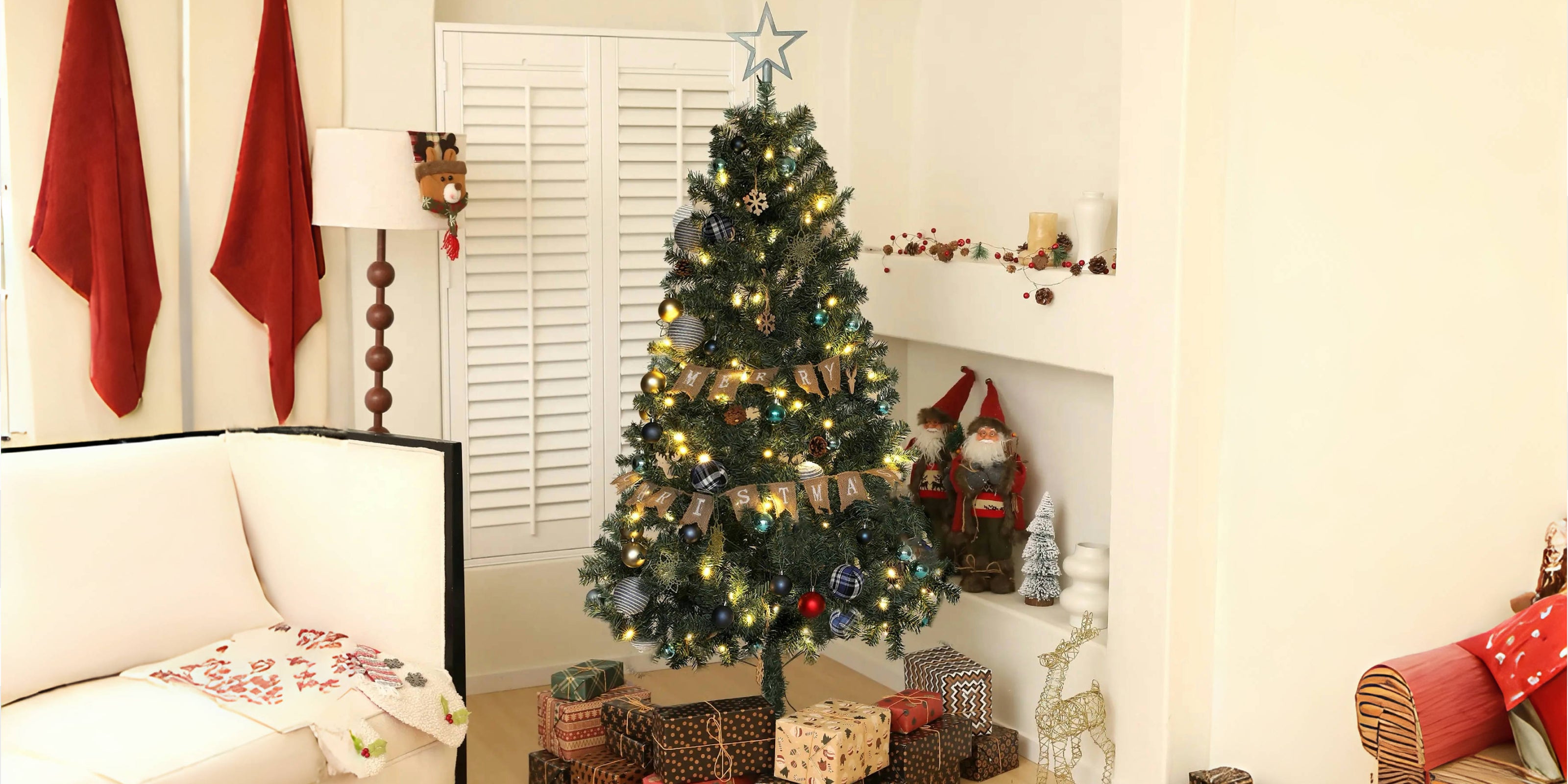 Celebrate the season with HOMCOM Christmas trees. Easy to assemble and beautifully realistic, they bring festive charm to your home year after year—without the mess of real pine.