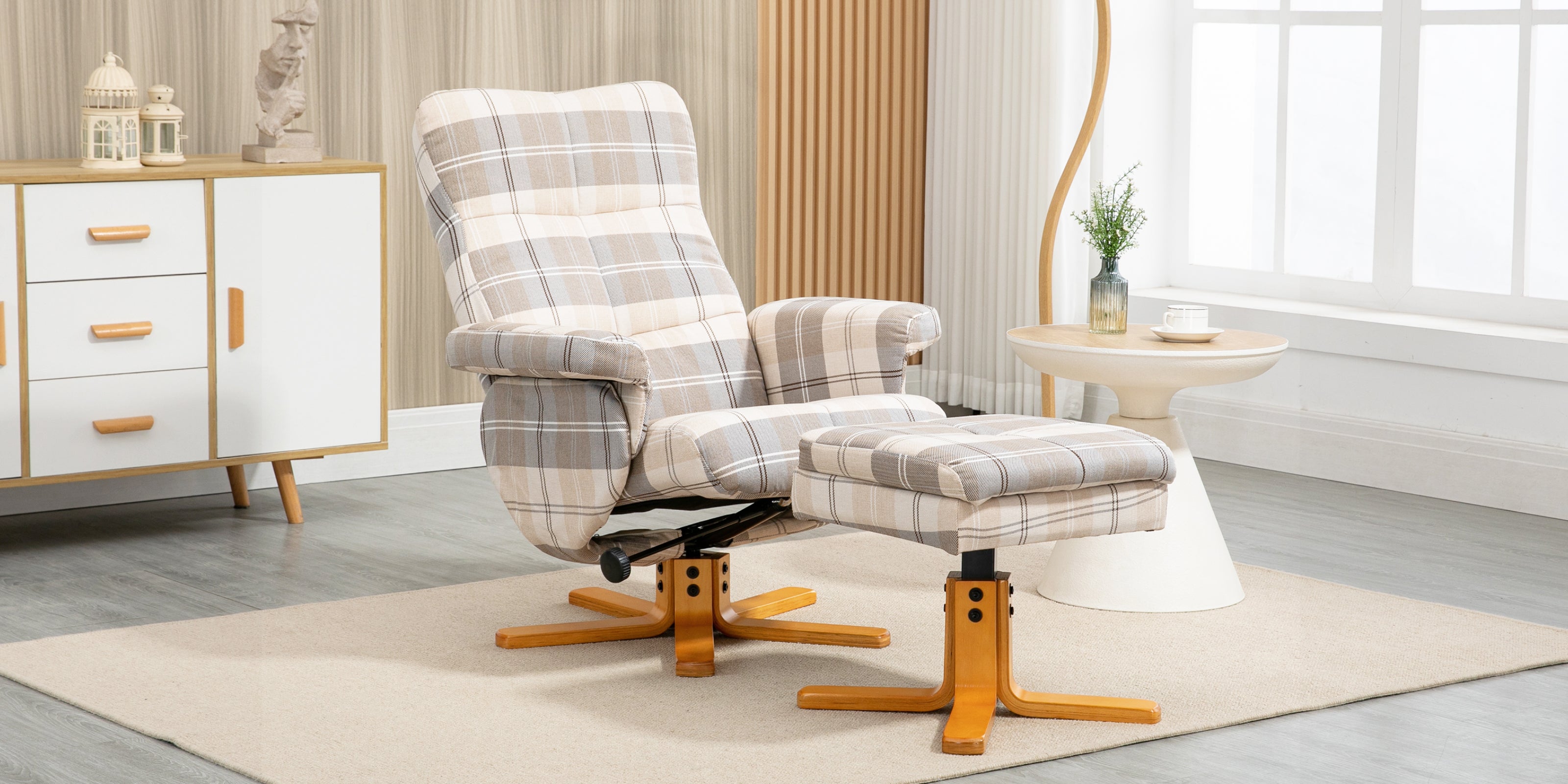 Faux Leather Recliner with Ottoman, Swivel Recliner w/ High Back & Wood Base, GrayFaux Leather Recliner with Ottoman, Swivel Recliner w/ High Back & Wood Base, Gray