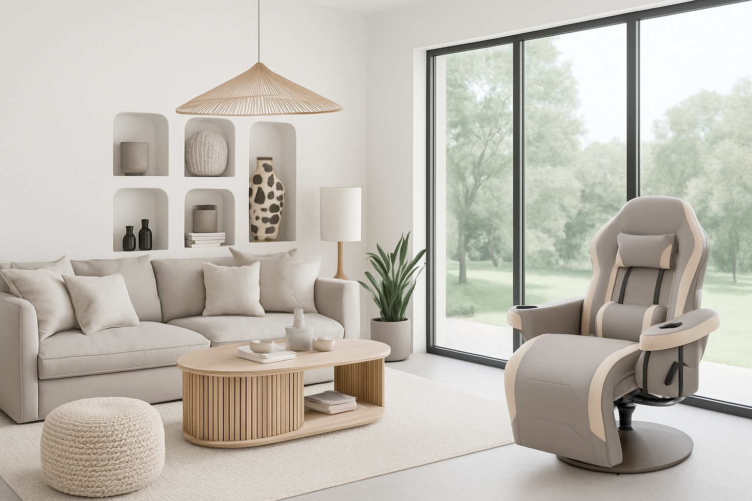 PU Leather Gaming Chair, Swivel Manual Recliner with Footrest, Headrest & Cup Holder, Grey