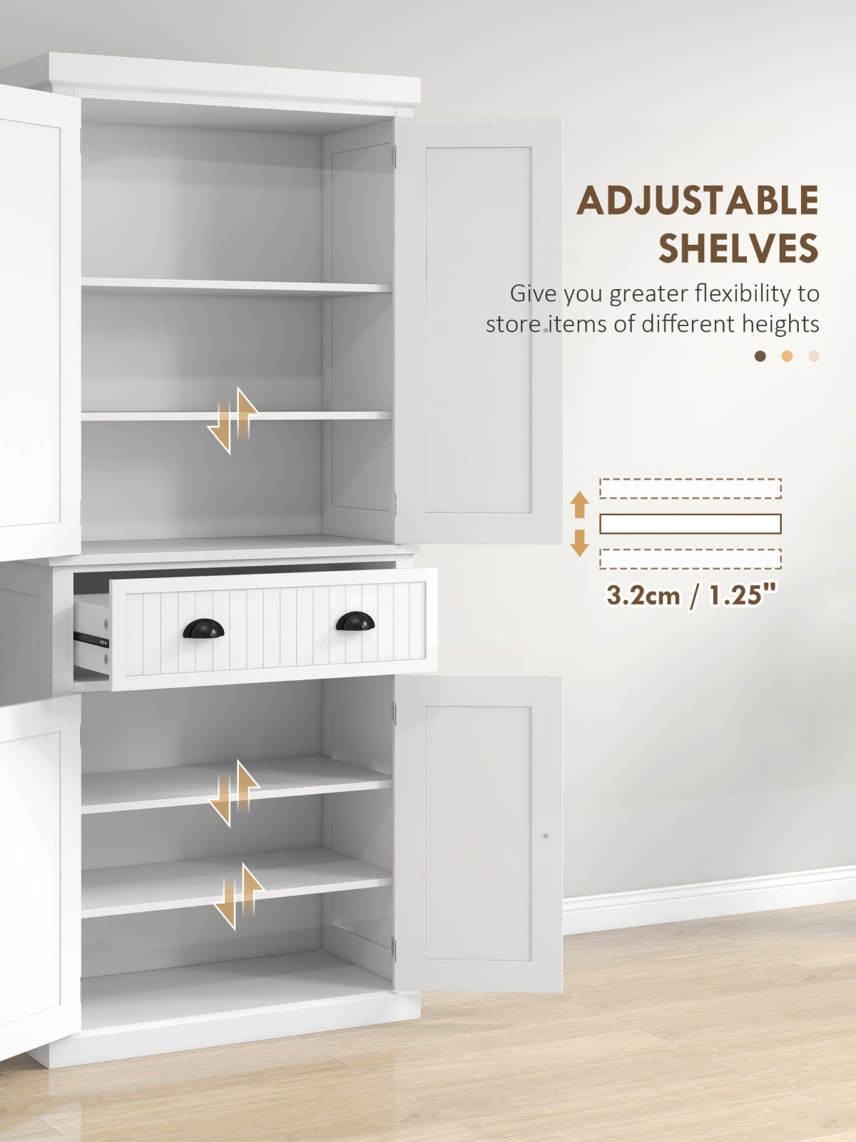 Featuring 4 shelves with the top fixed and the lower 3 adjustable for a variety of different sized items to be stored within the pantry cabinet, or remove all the shelves to create a single large display alcove. Each shelf has a maximum weight capacity of 22lbs.