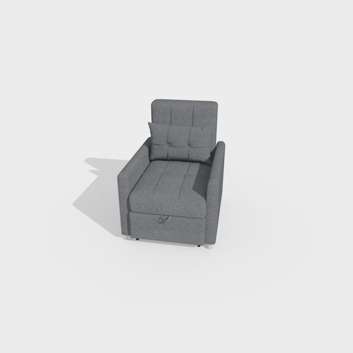 3-in-1 Convertible Pull Out Chair Bed with Adjustable Backrest, Pillow, & Pockets, Gray