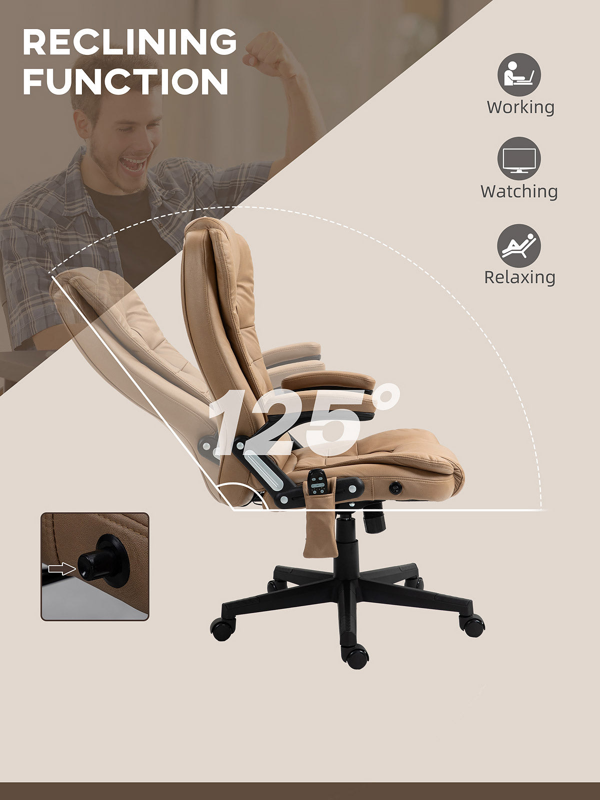 6 Points Heated Massage Office Chair, Linen High Back Executive Office Chair, Black