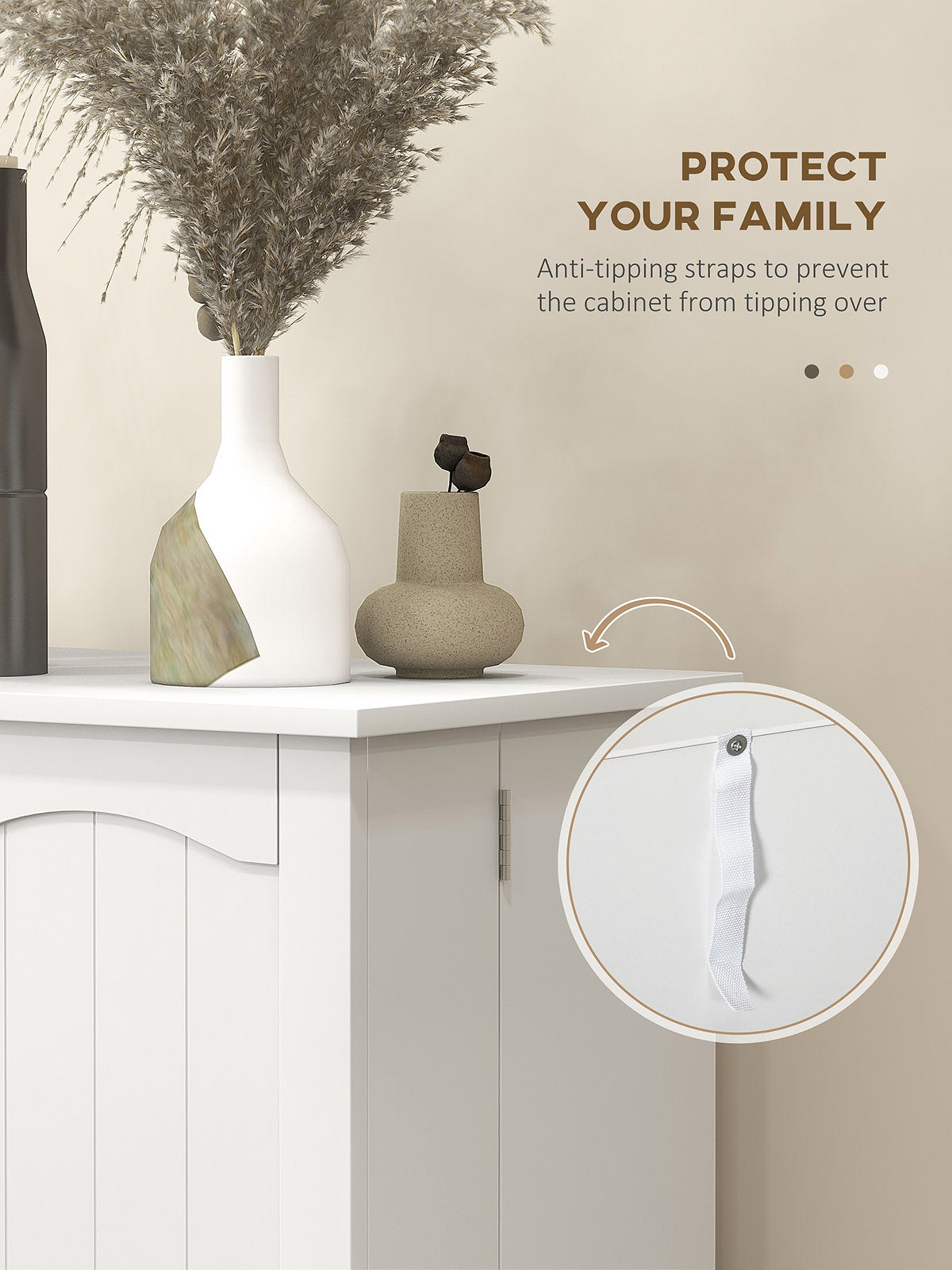 Prioritize safety without compromising style! Our Freestanding Kitchen Pantry Cabinet is designed with your family's well-being in mind, featuring secure Anti-Tipping Straps. Attach it firmly to the wall for peace of mind, knowing your space is safe as well as stylish. Ideal for homes bustling with activity, this pantry ensures that stability and elegance coexist beautifully.