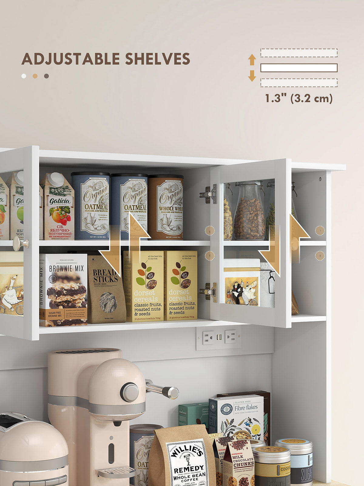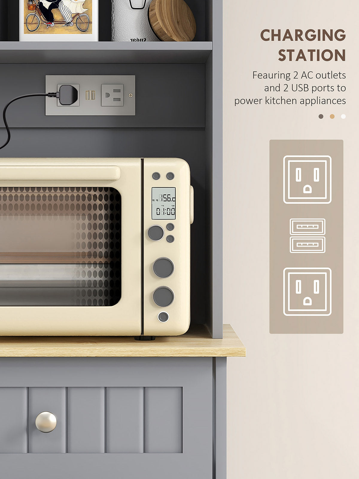 Power your kitchen appliances, such as microwaves or coffee makers; our microwave cabinet has a convenient power socket featuring 2 AC outlets and 2 USB ports.